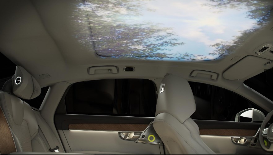 Yếu tố hình ảnh biến đổi trần xe theo chủ đề đã chọn — bao gồm Đèn phương Bắc, Rừng Scandinavia, Hồ thiên nga, Quần đảo và Mưa — mỗi yếu tố mang đến một tâm trạng khác nhau từ thư giãn đến tiếp thêm sinh lực. Ngoài ra còn có chủ đề Về đêm để nghỉ ngơi, trong khi chủ đề Tự do mang lại nguồn năng lượng tươi mới và thăng hoa.